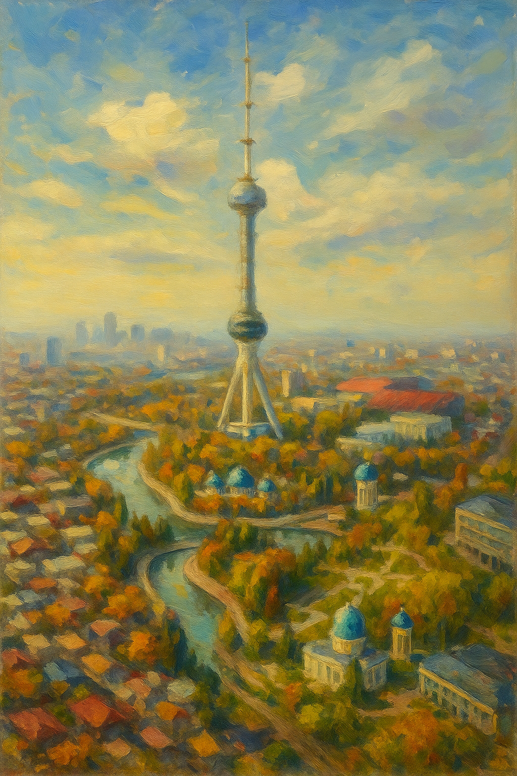 The Tashkent TV Tower, standing 375 meters tall, is the highest structure in Central Asia and a striking city landmark. Its observation deck at 97 meters offers wide views of Tashkent, especially stunning at sunrise or sunset. From above, Soviet-era blocks, modern buildings, tree-lined streets, and distant mountains unfold in quiet contrast. More than a viewpoint, it offers a calm moment of reflection.