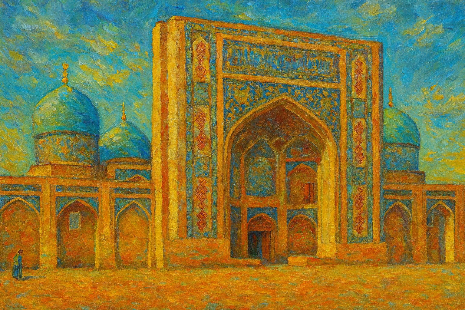 The Kukeldash Madrasah, built in the 16th century in Tashkent’s Old City, is one of Central Asia’s largest and most iconic Islamic schools. Its grand portal, brickwork, and balanced proportions reflect classical Islamic architecture. Once a center of learning, it remains a symbol of the city’s scholarly heritage, linking Tashkent’s historic spirit with its modern cultural life.